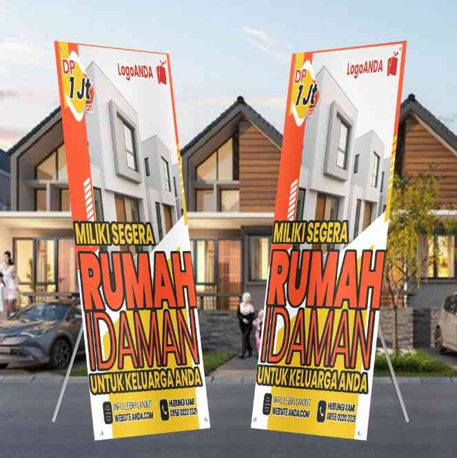 X BANNER promosi properti bergaya modern dan minimalis sebagai media promosi, menampilkan slogan “Miliki Segera Rumah Idaman untuk Keluarga Anda”. Des...