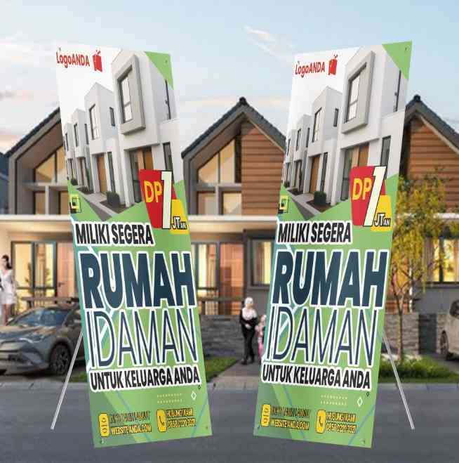 X BANNER ini sangat cocok digunakan untuk mempromosikan proyek perumahan baru, cluster eksklusif, atau hunian modern di lokasi strategis dengan target pasar keluarga muda.