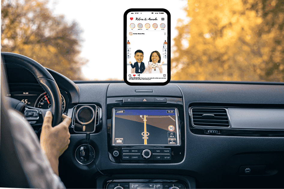 Akrilik Goyang Goyang Desain Couple Yang Menikah Di gereja menampilkan figur pasangan pengantin dalam bentuk ilustrasi karakter kartun, mengenakan pakaian pengantin formal—pria dengan setelan jas gelap dan wanita dengan gaun putih membawa buket—berdiri di bawah dekorasi altar gereja yang dihias bunga, dengan warna dominan putih, krem, dan biru muda. Elemen visual utama berupa ekspresi wajah yang ceria dan dekorasi gereja klasik menonjolkan nuansa pernikahan sakral. Produk ini cocok sebagai souvenir, hadiah personal, atau dekorasi meja untuk pasangan menikah, ideal untuk industri pernikahan atau toko kado custom.
