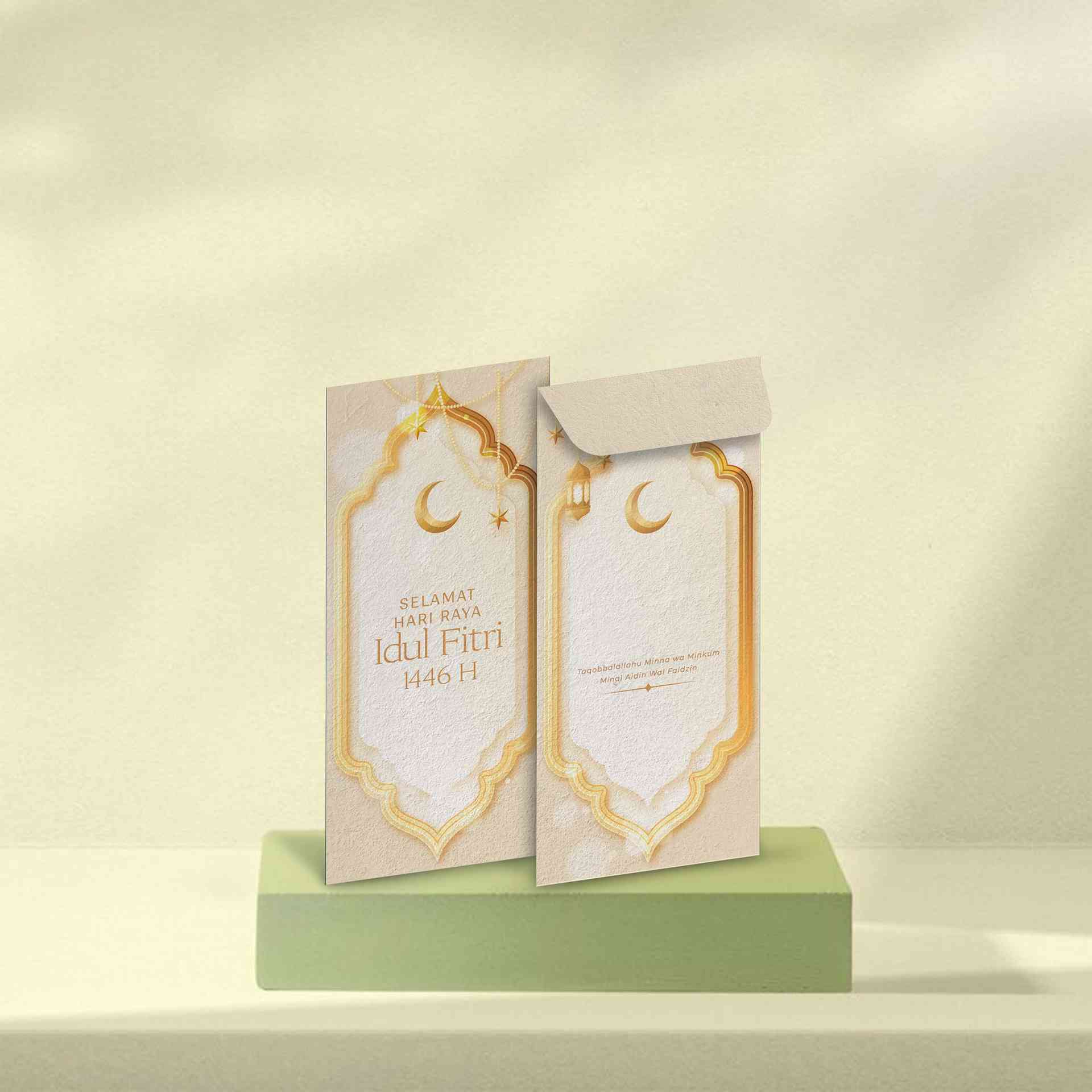 Amplop Lebaran ini menampilkan desain yang elegan dengan dominasi warna krem dan sentuhan emas✨, menciptakan kesan hangat dan penuh kemewahan. Ornamen...