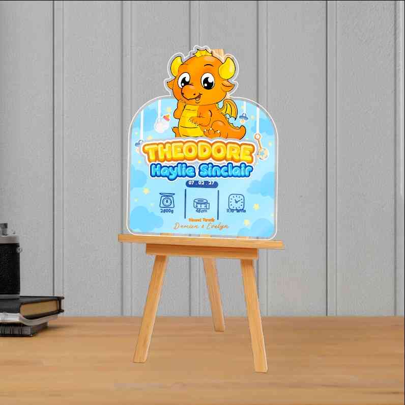 Babyboard kelahiran bayi bertema naga lucu yang menggemaskan dengan desain berbentuk silhouette kepala naga di bagian atas. Babyboard ini dibuat denga...
