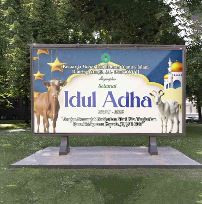 Baliho ini dibuat oleh Keluarga Besar Kerukunan Wanita Islam (KWI) Ranting Masjid Al-Istiqomah untuk menyambut Hari Raya Idul Adha 1446 H / 2025. Meng...