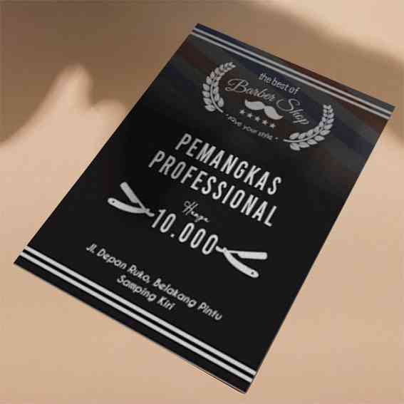 Baliho ini mempromosikan Madura Barbershop, tempat pangkas rambut dengan harga terjangkau hanya Rp20.000. Dengan desain yang modern dan profesional, b...