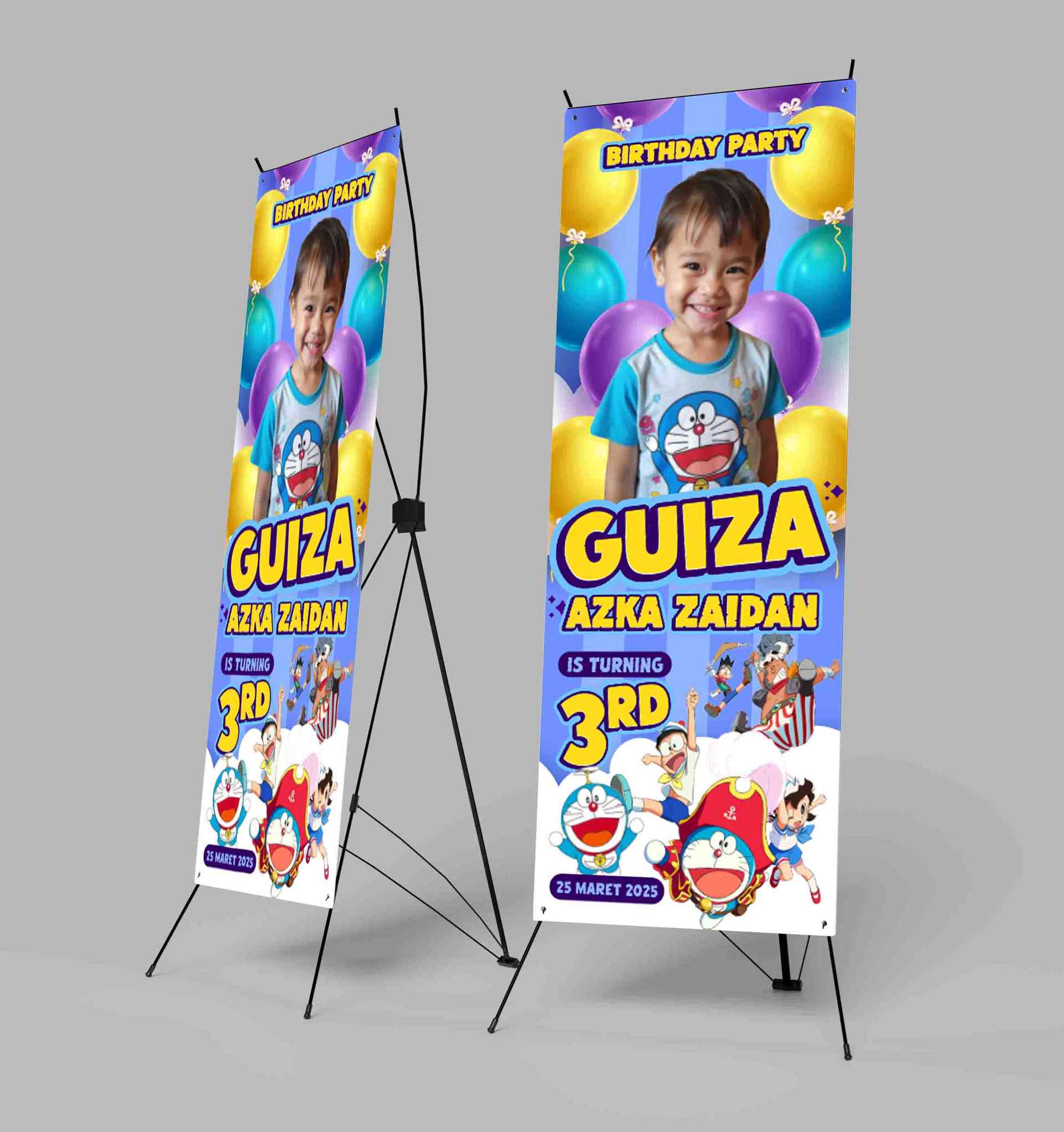 X-Banner ini mengusung tema Doraemon, sangat cocok untuk anak-anak yang menyukai karakter-karakter lucu dan petualangan seru. Latar belakang berwarna...