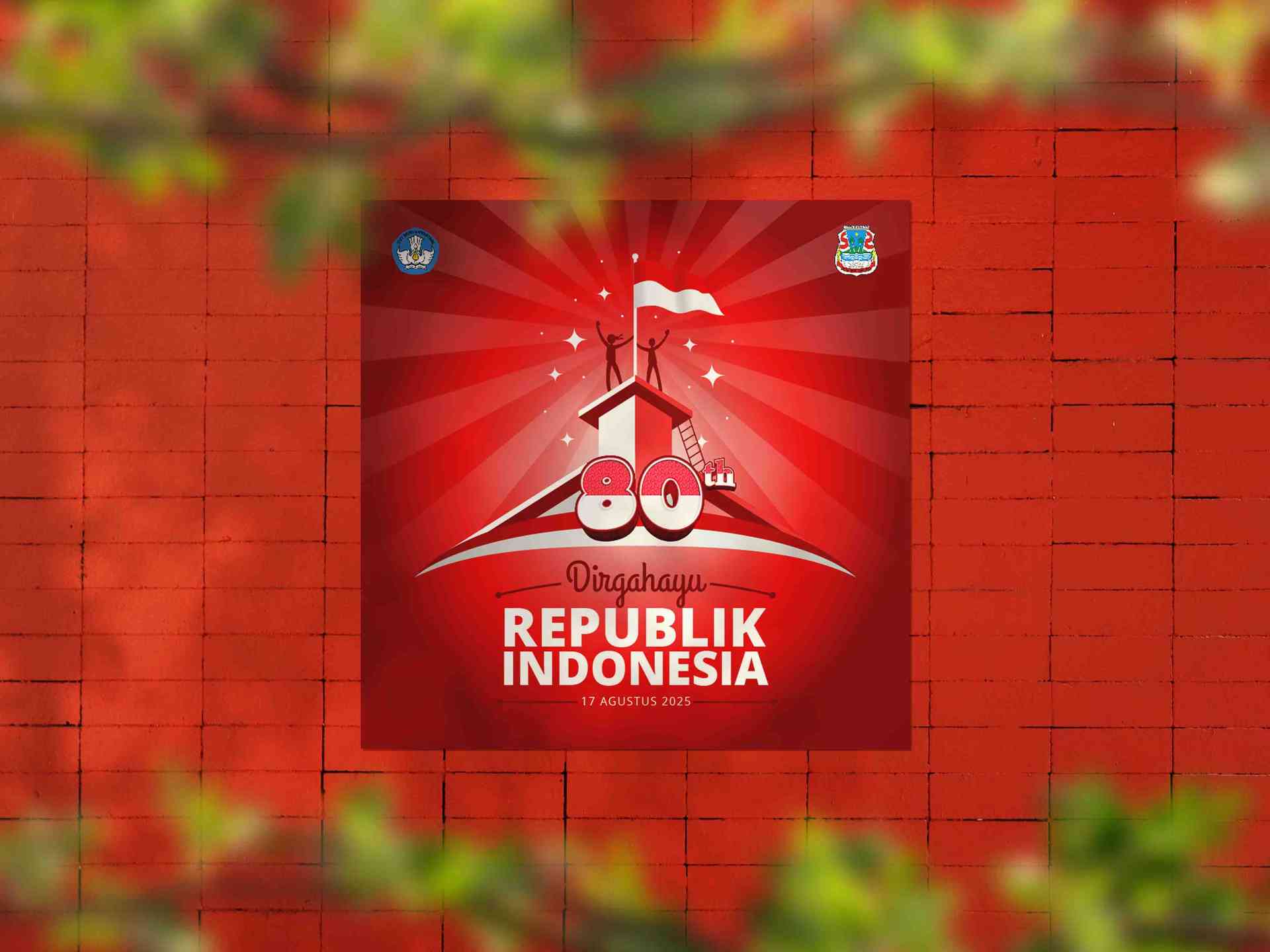 Baliho perayaan Kemerdekaan Indonesia ke-80 ini berbentuk persegi dengan desain grafis dominan warna merah dan putih, menampilkan elemen utama berupa...