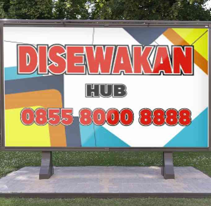 Papan reklame ini dirancang dengan gaya tegas dan langsung, menampilkan kata "DISEWAKAN" dalam huruf kapital besar berwarna merah menyala dengan outli...