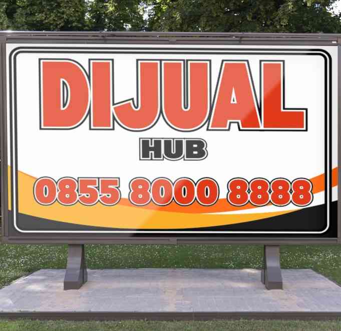 Papan reklame ini dirancang dengan gaya tegas dan langsung, menampilkan kata "dijual " dalam huruf kapital besar berwarna merah menyala dengan outline...