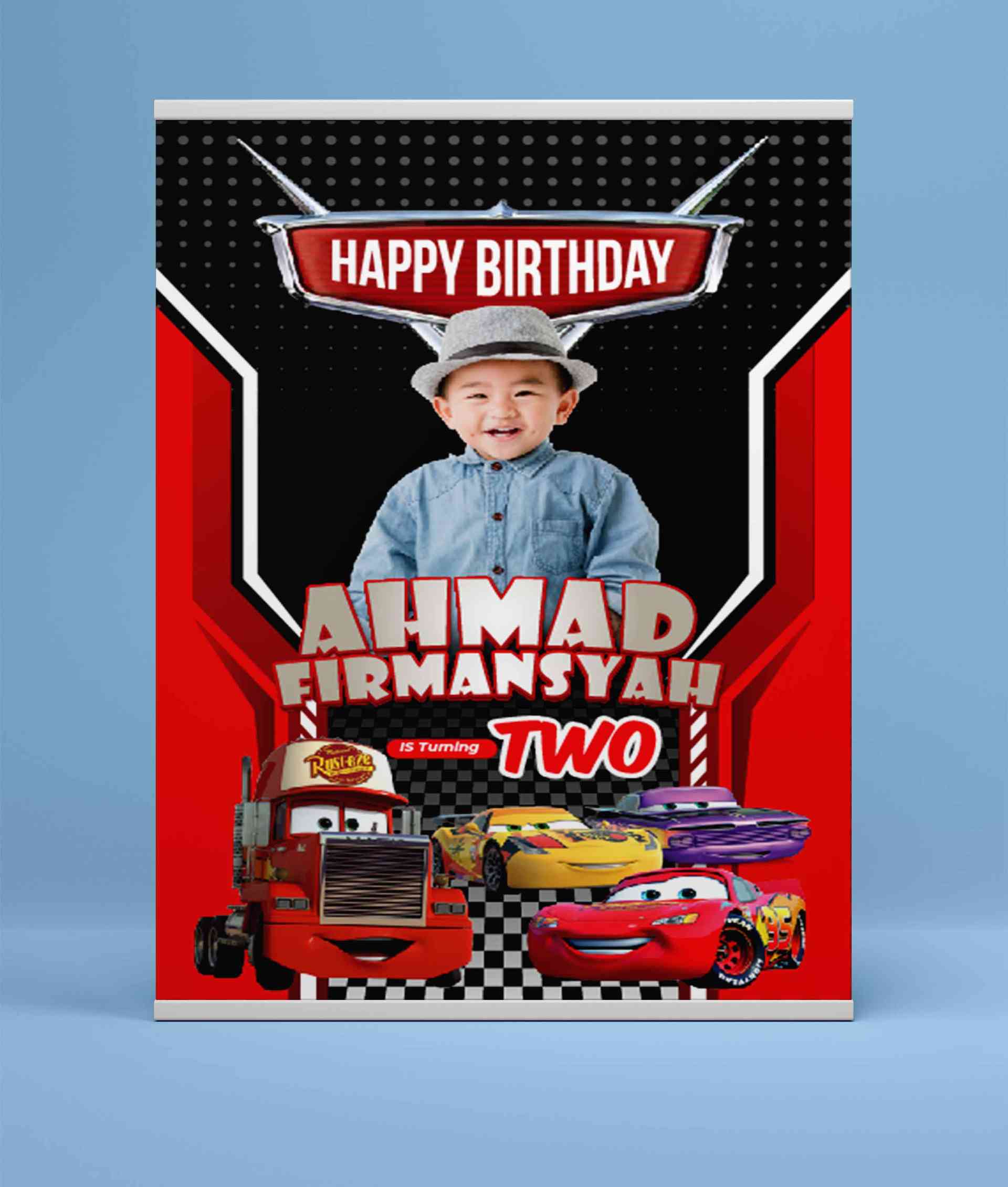 Mari bergabung dalam perayaan ulang tahun yang mengasyikkan dengan tema Cars Disney yang penuh dengan kecepatan dan kegembiraan! Baliho ini memukau de...