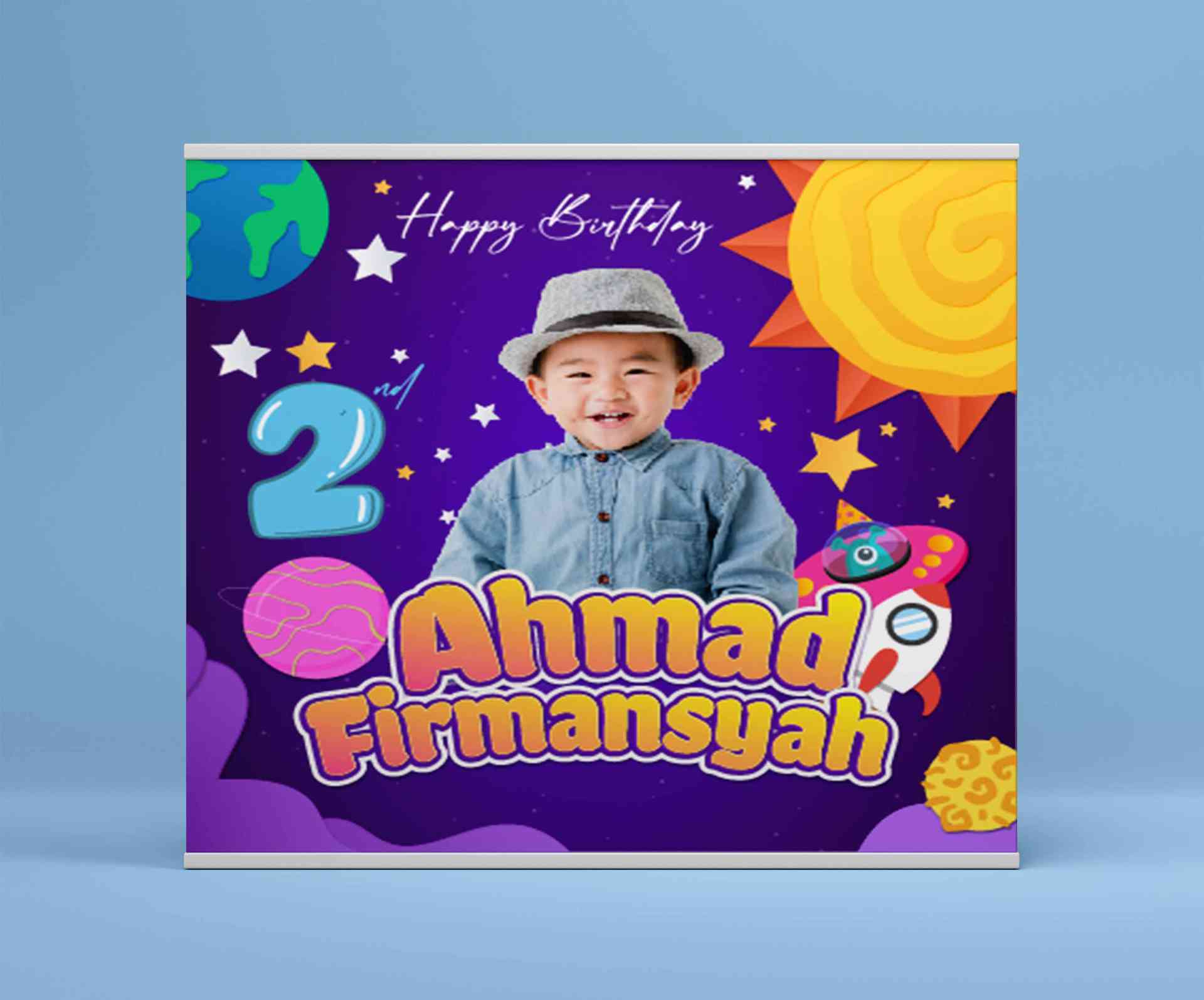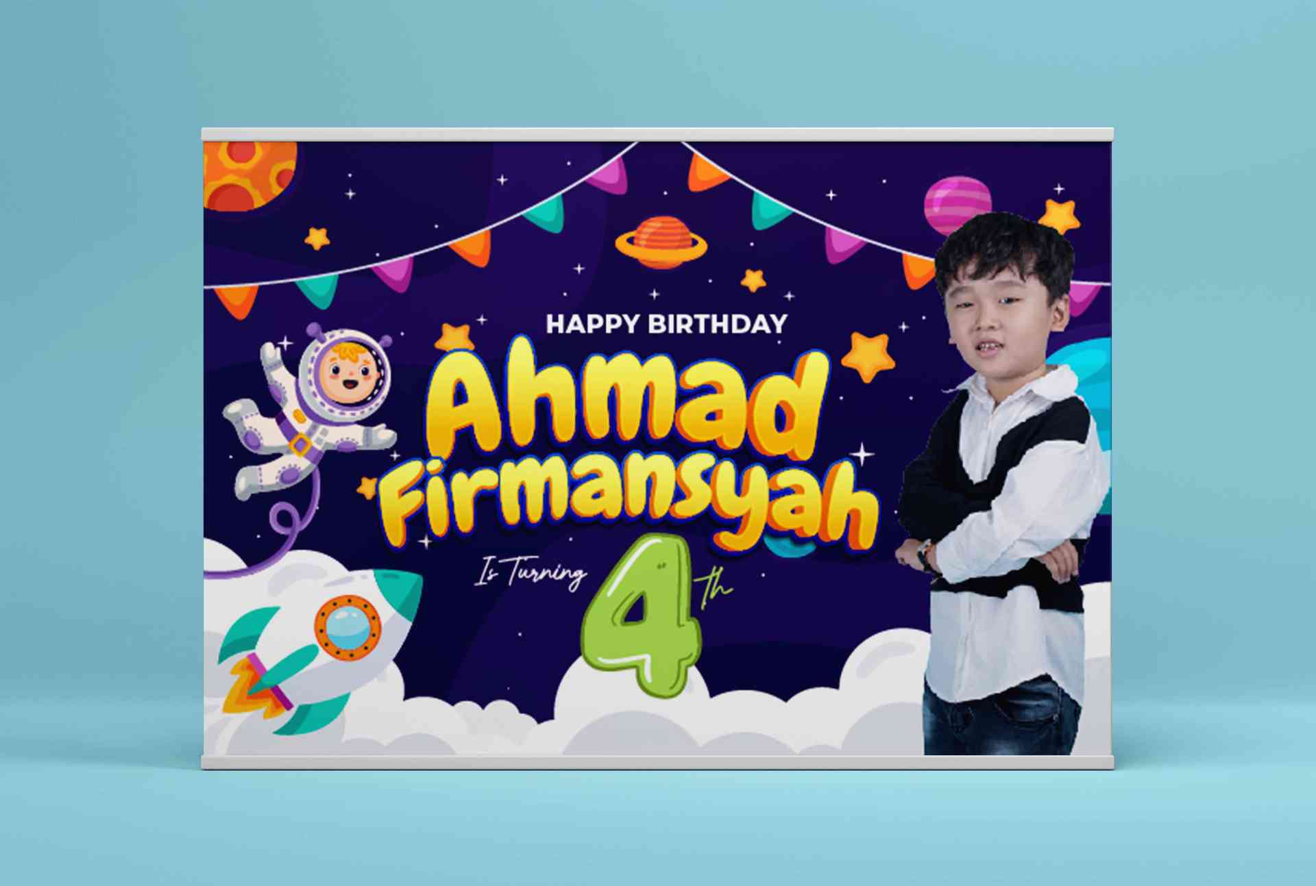 Dengan latar belakang kosmos yang luas, baliho ini menggambarkan perayaan yang luar biasa untuk memperingati HUT dengan tema NASA. Di tengah-tengah ba...