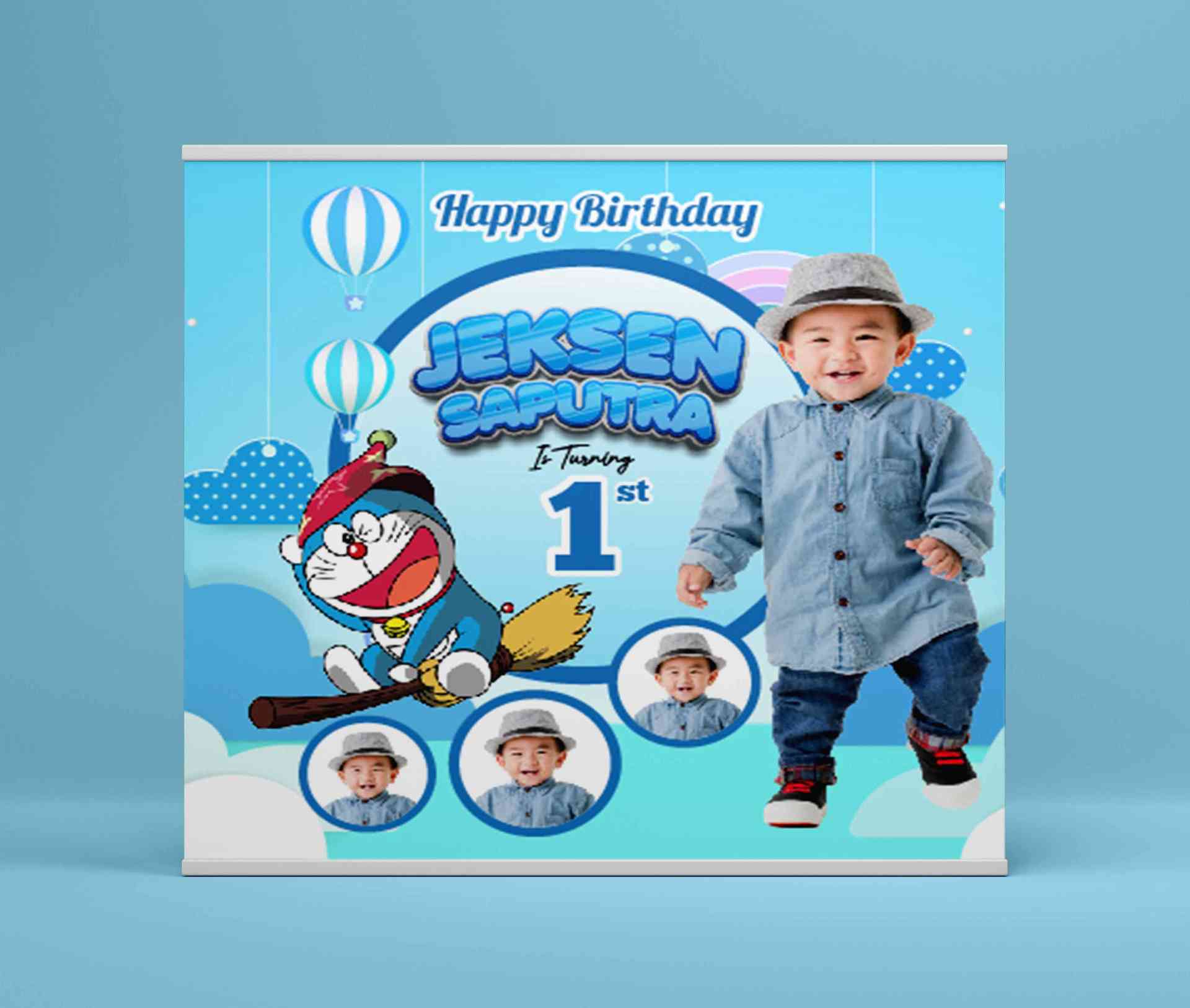 "Gelarlah perayaan ulang tahun yang tak terlupakan dengan tema Upin Ipin! Baliho berwarna cerah menggambarkan kegembiraan dan keceriaan dari karakter-...
