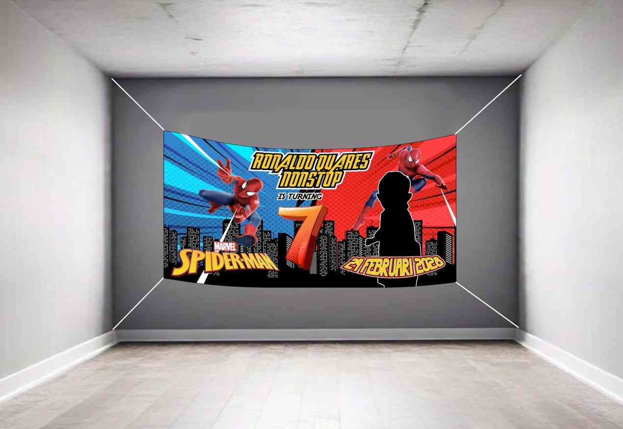 Desain baliho HUT anak dengan tema Spiderman ini menghadirkan latar belakang siluet kota berupa gedung-gedung berwarna hitam dengan lampu-lampu putih...