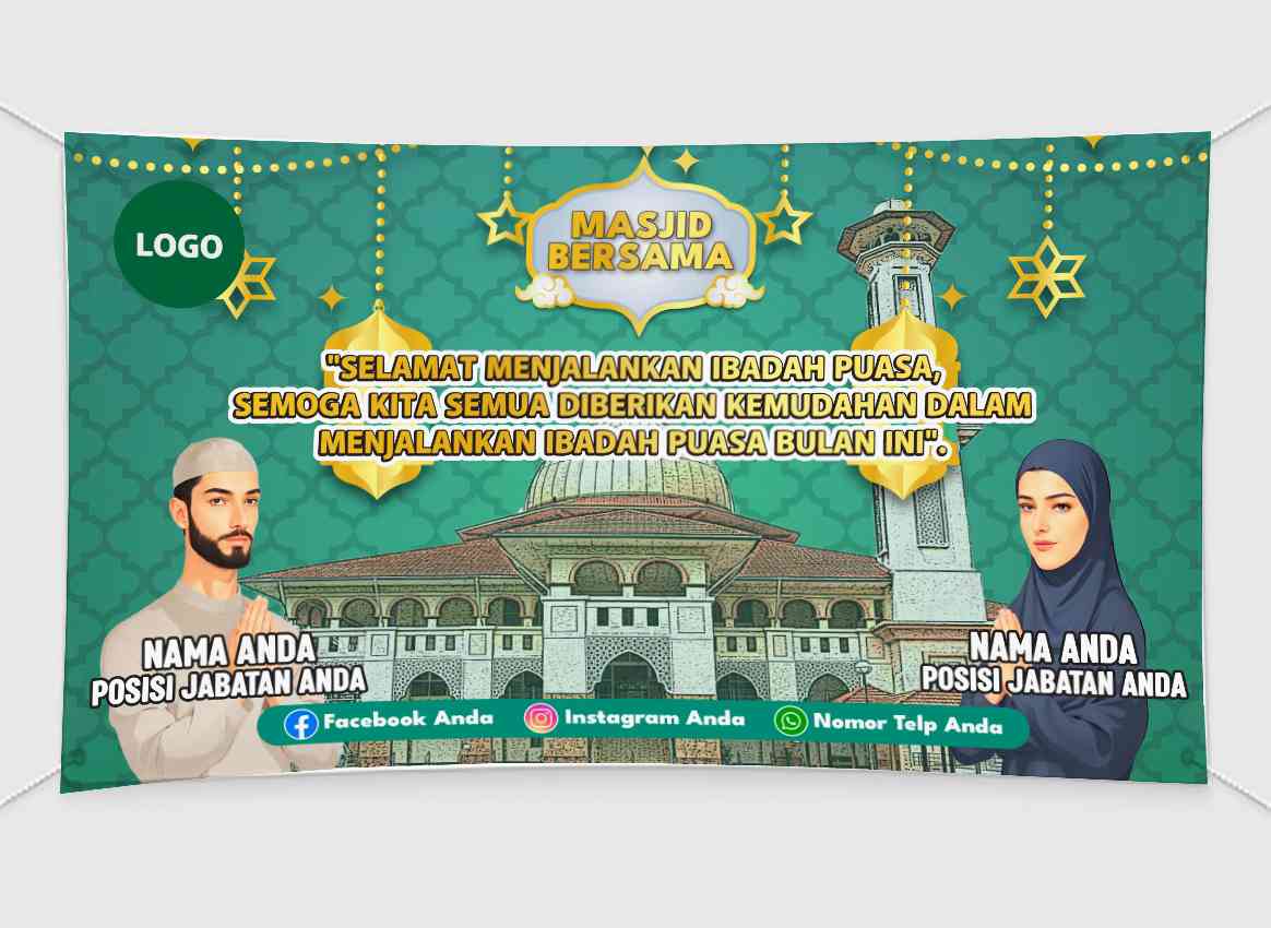 Baliho ini memiliki desain bertemakan Ramadan dengan dominasi warna hijau dan elemen-elemen Islami. Berikut adalah deskripsi lengkapnya:Latar Belakang...