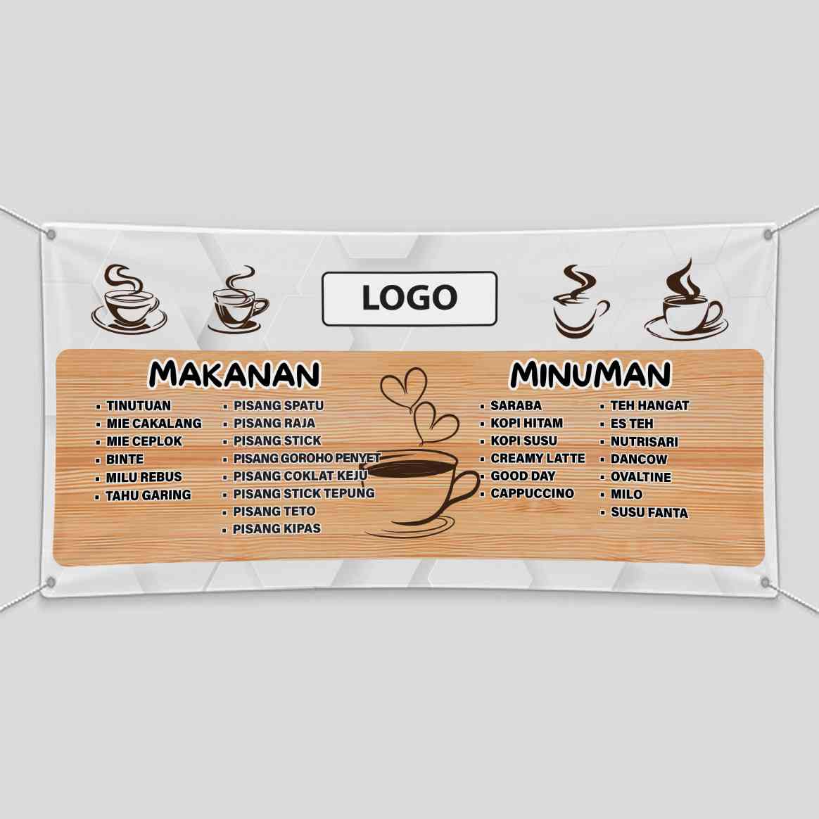 Deskripsi lengkap :Jenis Desain: Desain ini merupakan banner menu makanan dan minuman yang biasanya digunakan untuk warung kopi, kafe, atau tempat mak...