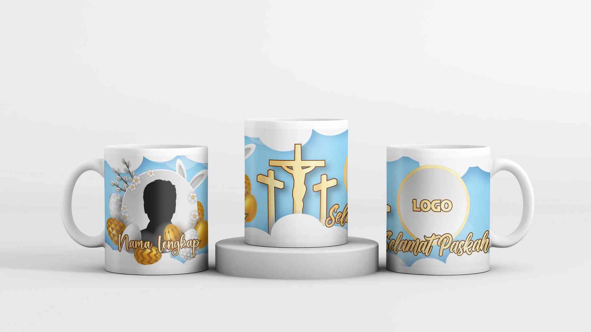 Template mug ini bertema Paskah dan memiliki desain yang ceria serta penuh makna religius. Berikut deskripsi lengkapnya:Tema: Paskah KristenWarna Domi...