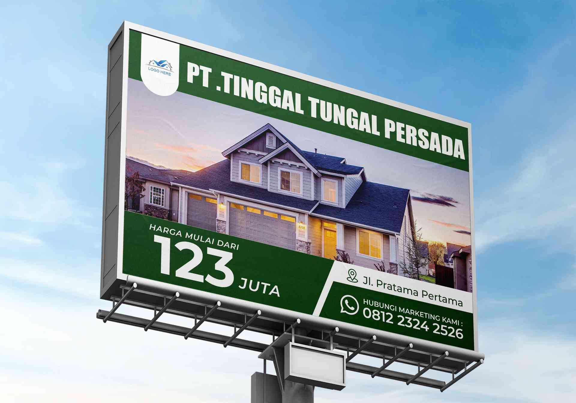 Baliho ini menawarkan properti premium dengan harga mulai dari 123 juta dan DP yang terjangkau. Menampilkan rumah dengan desain modern di lokasi strat...