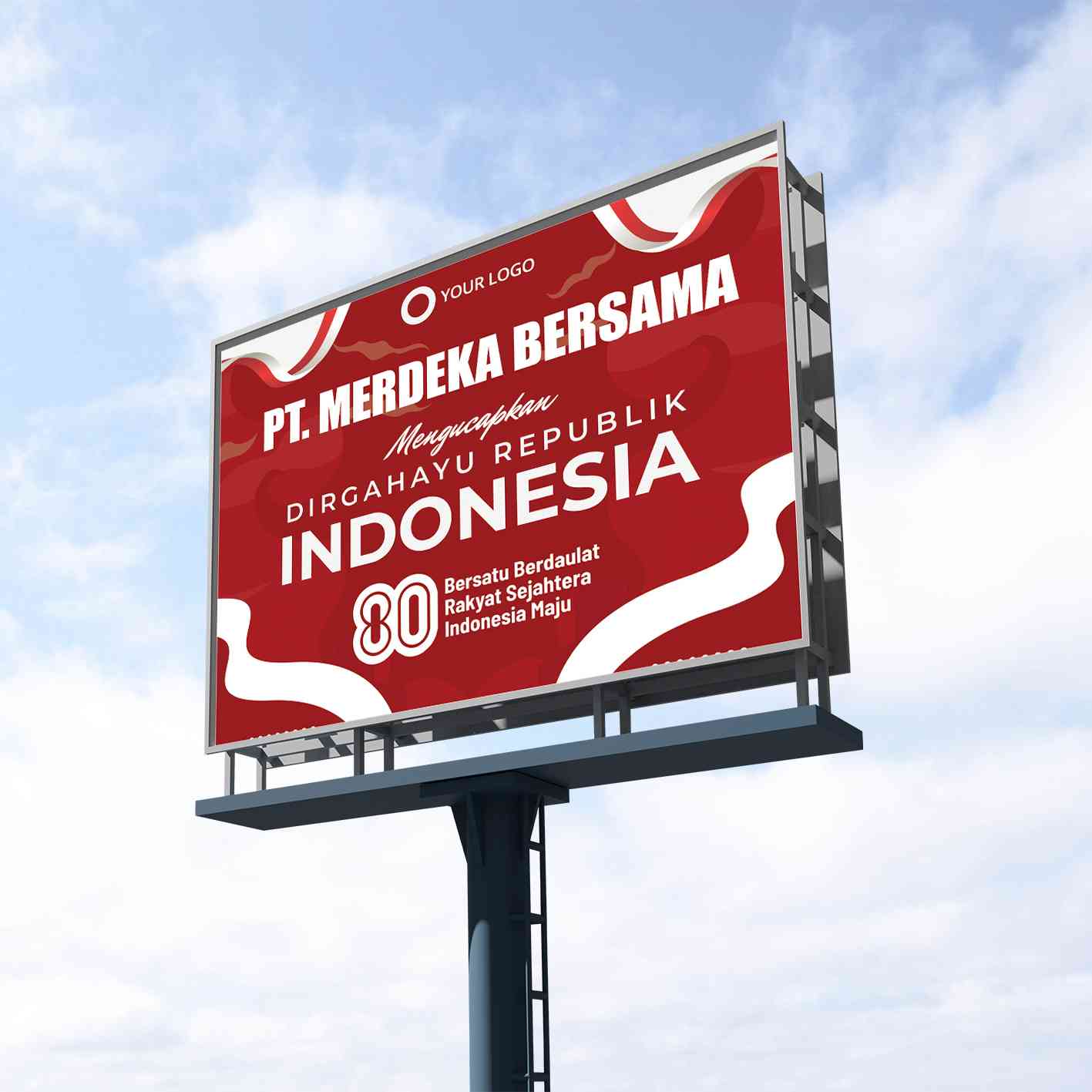 Baliho ucapan kemerdekaan memperingati Hari Ulang Tahun ke-80 Republik Indonesia ini hadir dalam bentuk persegi panjang besar dengan latar dominan mer...