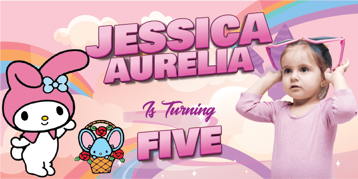 Selamat datang di Pesta Ulang Tahun yang penuh keceriaan dengan tema My Melody! Terpancarkan kegembiraan di setiap inci baliho ini yang memukau, dihiasi dengan gambar indah My Melody yang memikat hati. Latar belakangnya berwarna pastel yang lembut, menampilkan My Melody dalam berbagai pose manis yang pasti mengundang senyum dari setiap tamu yang lewat. Detail-detail kecil seperti bunga-bunga kecil dan sentuhan berlian yang bersinar menambah kesan magis pada dekorasi ini. Baliho ini tidak hanya memperingati momen spesial ulang tahun Anda tetapi juga menghadirkan nuansa kehangatan dan kebahagiaan yang tidak terlupakan. Segera bergabunglah dalam perayaan ini dan nikmati keajaiban My Melody yang membawa kebahagiaan!