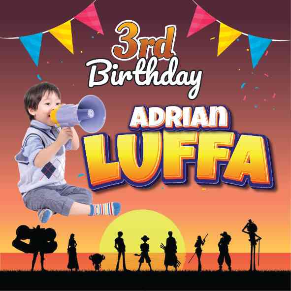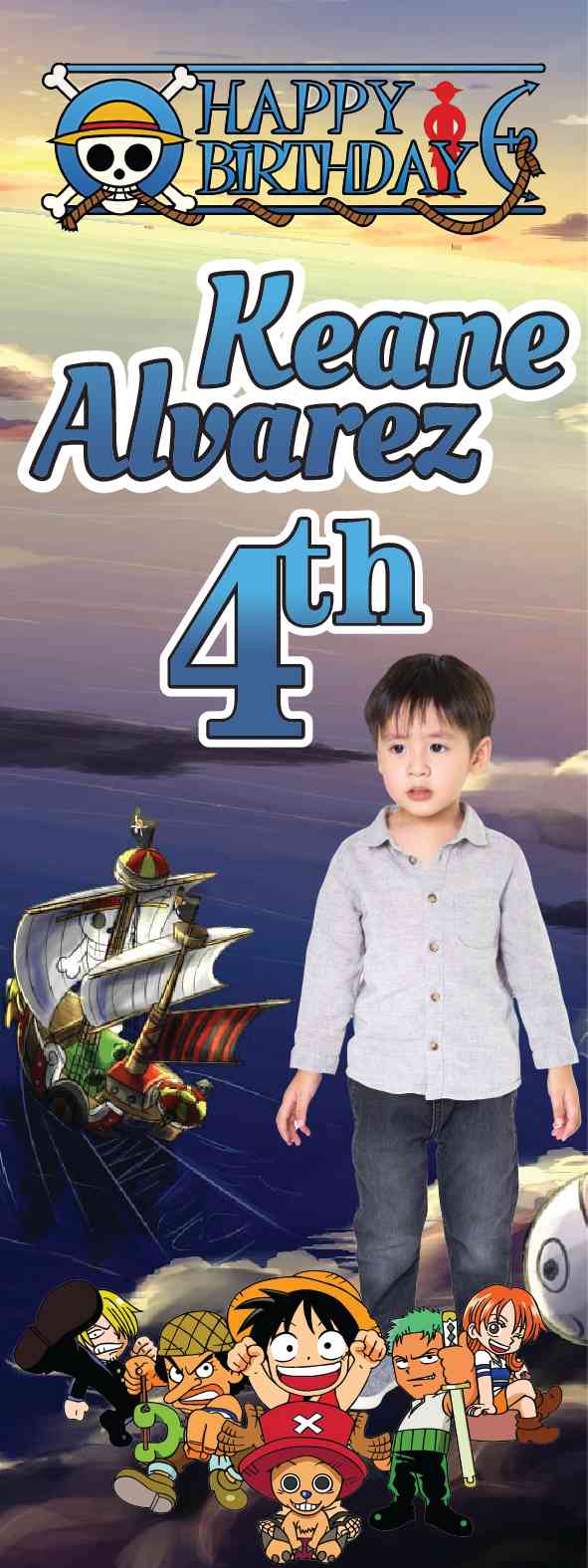 Baliho ulang tahun dengan tema One Piece adalah perpaduan yang sempurna antara kegembiraan petualangan dan semangat persahabatan. Di tengah baliho yang mencolok, tokoh-tokoh utama seperti Luffy, Zoro, dan kru Topi Jerami tergambar dengan penuh semangat, siap untuk menjalani petualangan epik berikutnya.