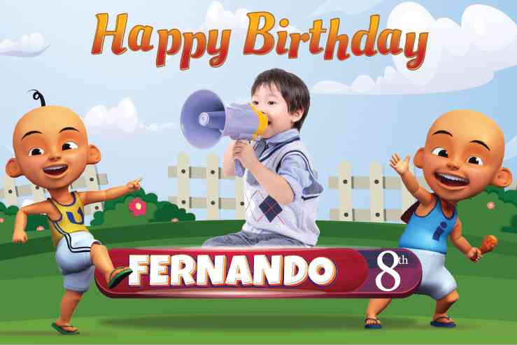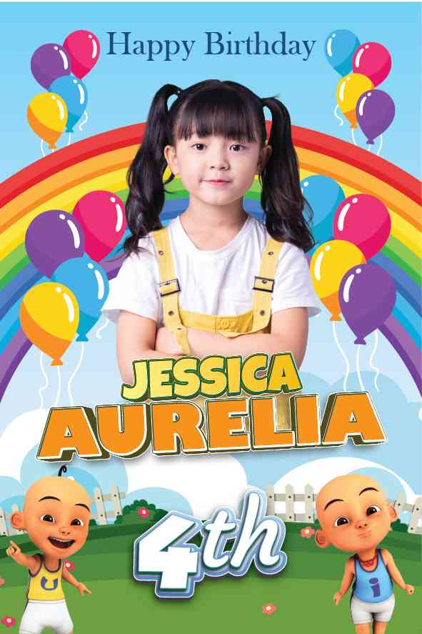 Baliho ulang tahun Upin & Ipin adalah sebuah perayaan penuh warna dan keceriaan yang menggambarkan karakter-karakter yang dicintai dari serial animasi tersebut. Dalam desain baliho ini, Upin & Ipin muncul dengan senyum cerah mereka, dihiasi dengan balon-balon berwarna-warni dan dekorasi ulang tahun yang memikat. Latar belakangnya mungkin dipenuhi dengan elemen-elemen dari dunia fantastis tempat mereka tinggal, seperti rumah mereka di Kampung Durian Runtuh, dengan suasana yang penuh kehangatan dan kebersamaan. Tulisan-tulisan meriah yang mempersembahkan ucapan "Selamat Ulang Tahun" atau pesan serupa memperkaya baliho tersebut, sementara gambar-gambar karakter lainnya mungkin juga terlihat, seperti Kak Ros, Opah, atau karakter-karakter lain yang menjadi bagian dari petualangan mereka. Dengan warna-warna cerah dan gambar-gambar yang menggemaskan, baliho ini menjanjikan sebuah perayaan yang tak terlupakan bagi siapa pun yang melihatnya.