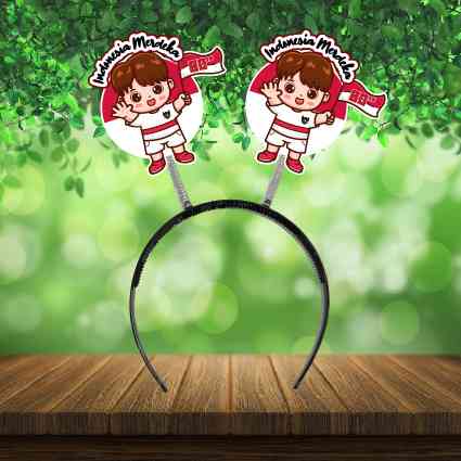 Bando Kemerdekaan Indonesia Ke 80 merupakan aksesori kepala berbentuk lingkaran berwarna hitam dengan dua ornamen utama yang menonjol: di satu sisi te...