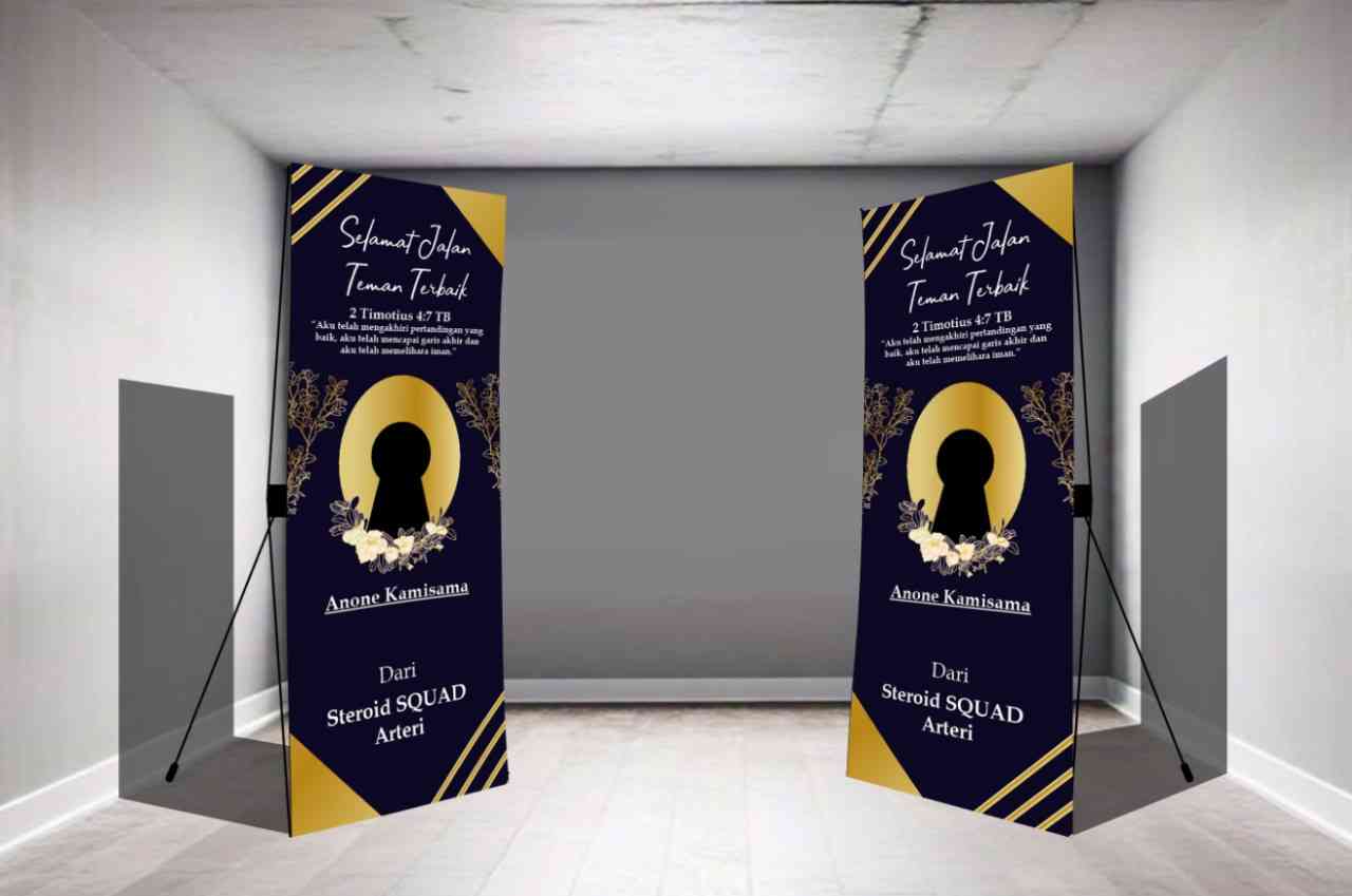 X-Banner ini dirancang khusus untuk brand kuliner Bakarica, menampilkan desain elegan dengan kombinasi warna hitam dan oranye yang tegas dan modern. B...