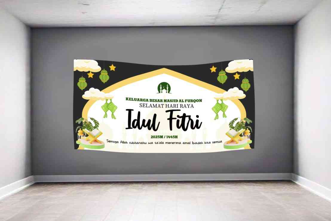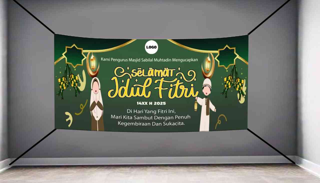 "Selamat Hari Raya Idul Fitri 14xx H"Rayakan kemenangan dengan penuh sukacita! Baliho bertema hijau, gold, dan krem ini menghadirkan nuansa elegan dan...
