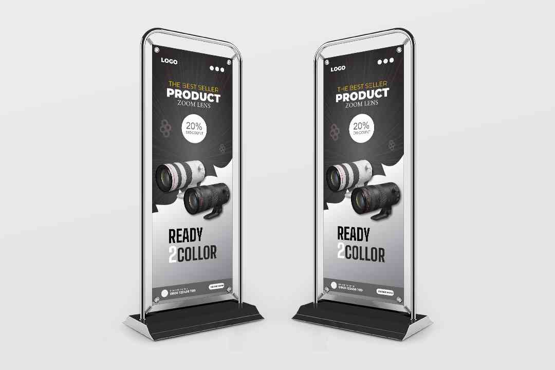 Banner ini adalah standing banner vertikal yang dirancang untuk promosi "Diskon Natal". Desain utamanya memiliki latar belakang berwarna hitam pekat y...