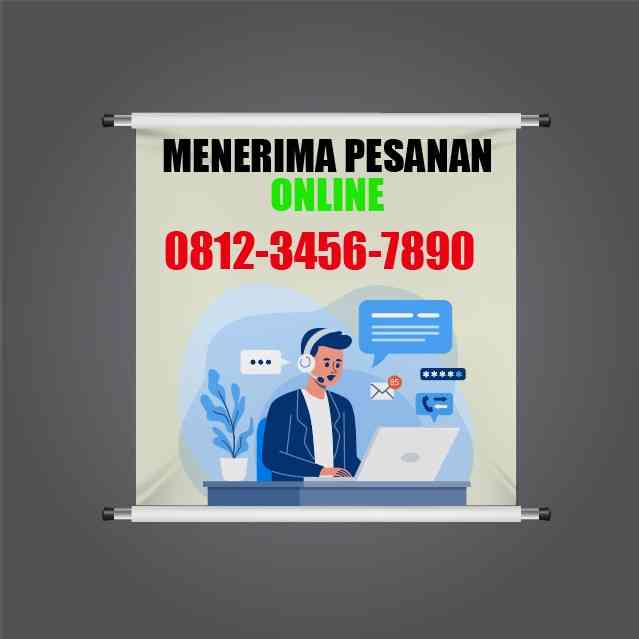 Baliho ini dirancang dengan gaya yang modern dan jelas. Judul utama "MENERIMA PESANAN ONLINE" menggunakan font tebal dan besar, dengan warna hijau cer...