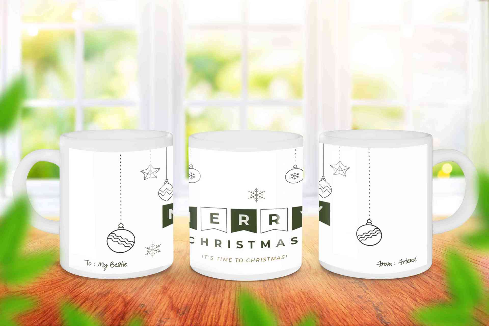 Mug “It Is Time To Celebration Merry Christmas” berbentuk silinder dengan pegangan klasik, didominasi warna putih dengan elemen desain grafis sederhan...