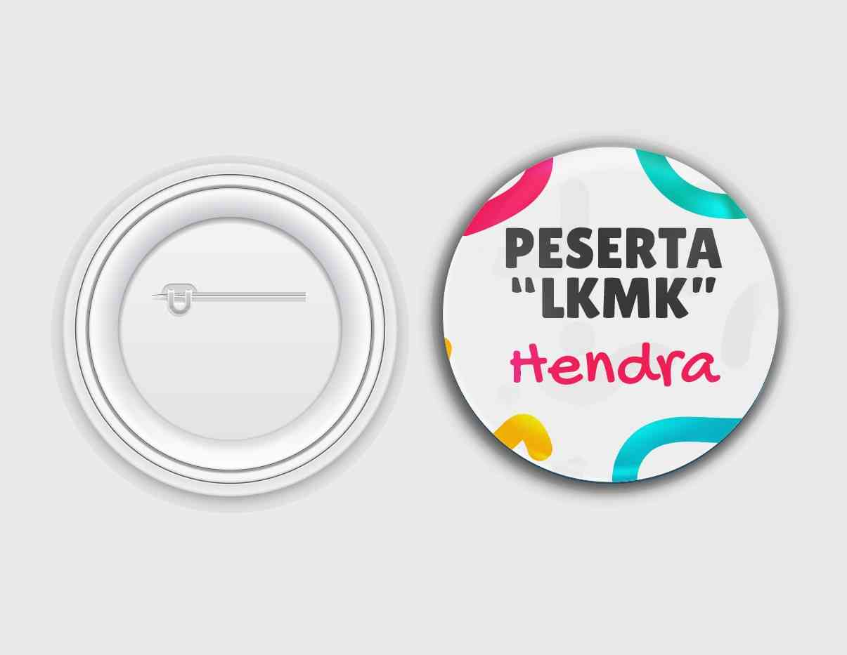 Desain pin peniti ini dirancang dengan gaya yang ceria dan dinamis, menggunakan elemen warna cerah yang menarik. Teks "PESERTA 'LKMK'" ditulis dengan...