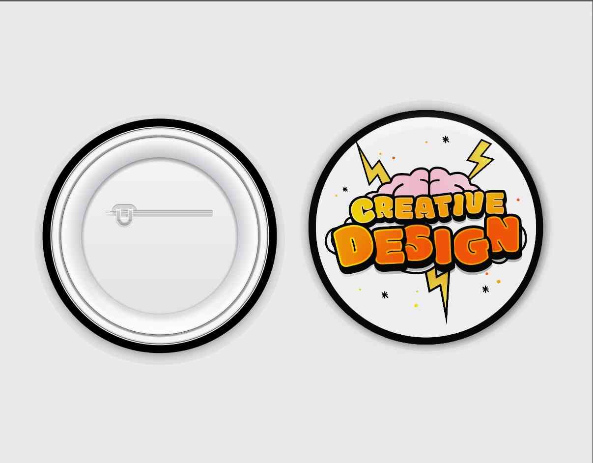 Pin ini menampilkan desain yang energik dan penuh semangat, dengan tulisan "CREATIVE DESIGN" yang besar dan tebal, dikelilingi oleh elemen grafis dina...