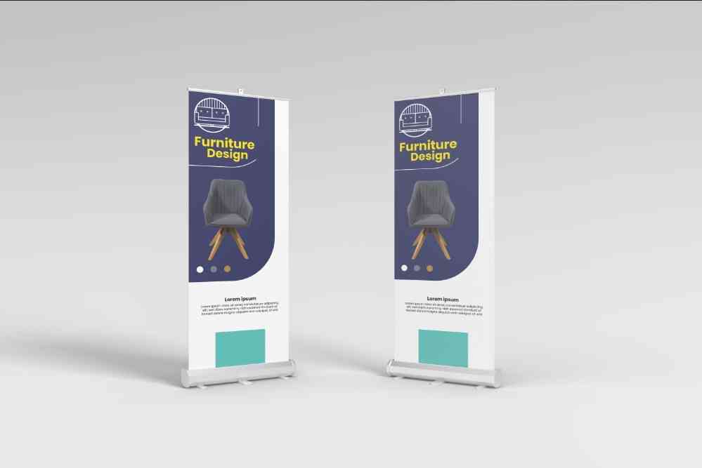 Banner ini menampilkan desain furniture yang stylish dan modern dengan dominasi warna biru dan oranye. Dilengkapi dengan gambar kursi yang elegan, ban...