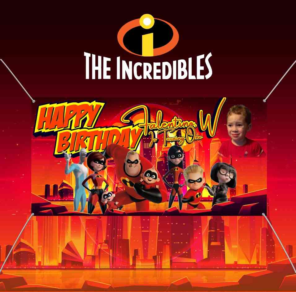 Tema Baliho: Ulang Tahun dengan Tema The Incredibles Baliho ini dibuat untuk merayakan ulang tahun pertama seorang anak bernama "Falentino W". Desainn...
