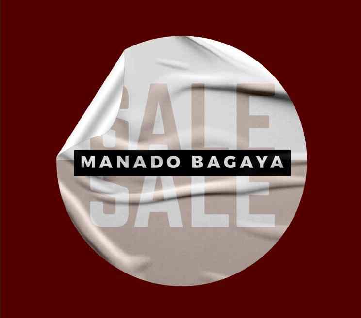 Stiker ini mengusung konsep modern dengan elemen typografi besar “SALE” berwarna beige di latar belakang dan teks bold “MANADO BAGAYA” pada bar hitam...