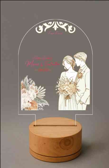 Desain Dream LED ini menampilkan ilustrasi pasangan pengantin dengan gaya line art minimalis yang elegan. Sang pengantin wanita mengenakan gaun panjan...