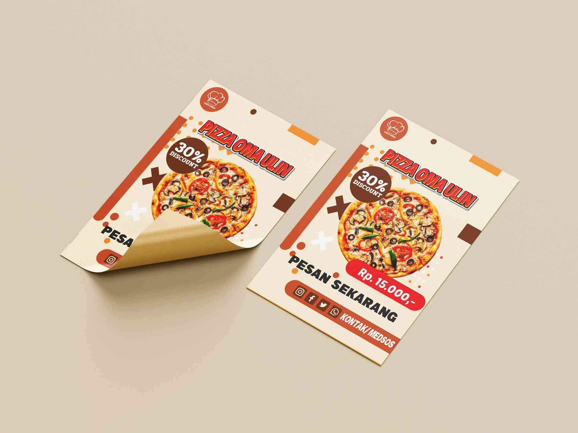 ✅ Deskripsi Template Pizza Oma Ulin:Template promosi makanan modern bertema pizza dengan nuansa warna krem, cokelat, dan oranye yang hangat. Fokus uta...