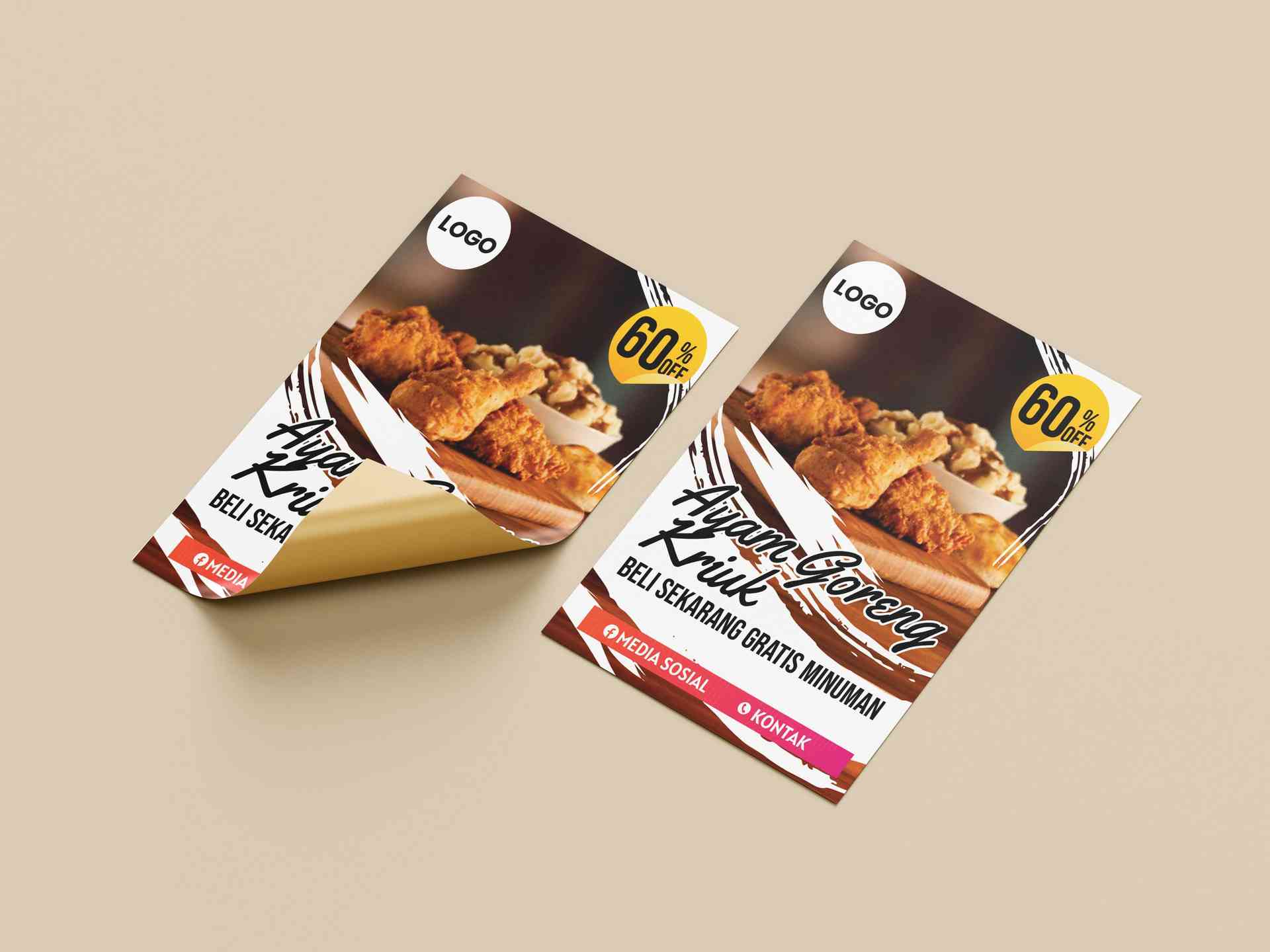 Deskripsi:Poster promosi makanan menampilkan ayam goreng kriuk bertekstur renyah yang menggoda, disajikan di atas talenan kayu, dengan latar belakang...