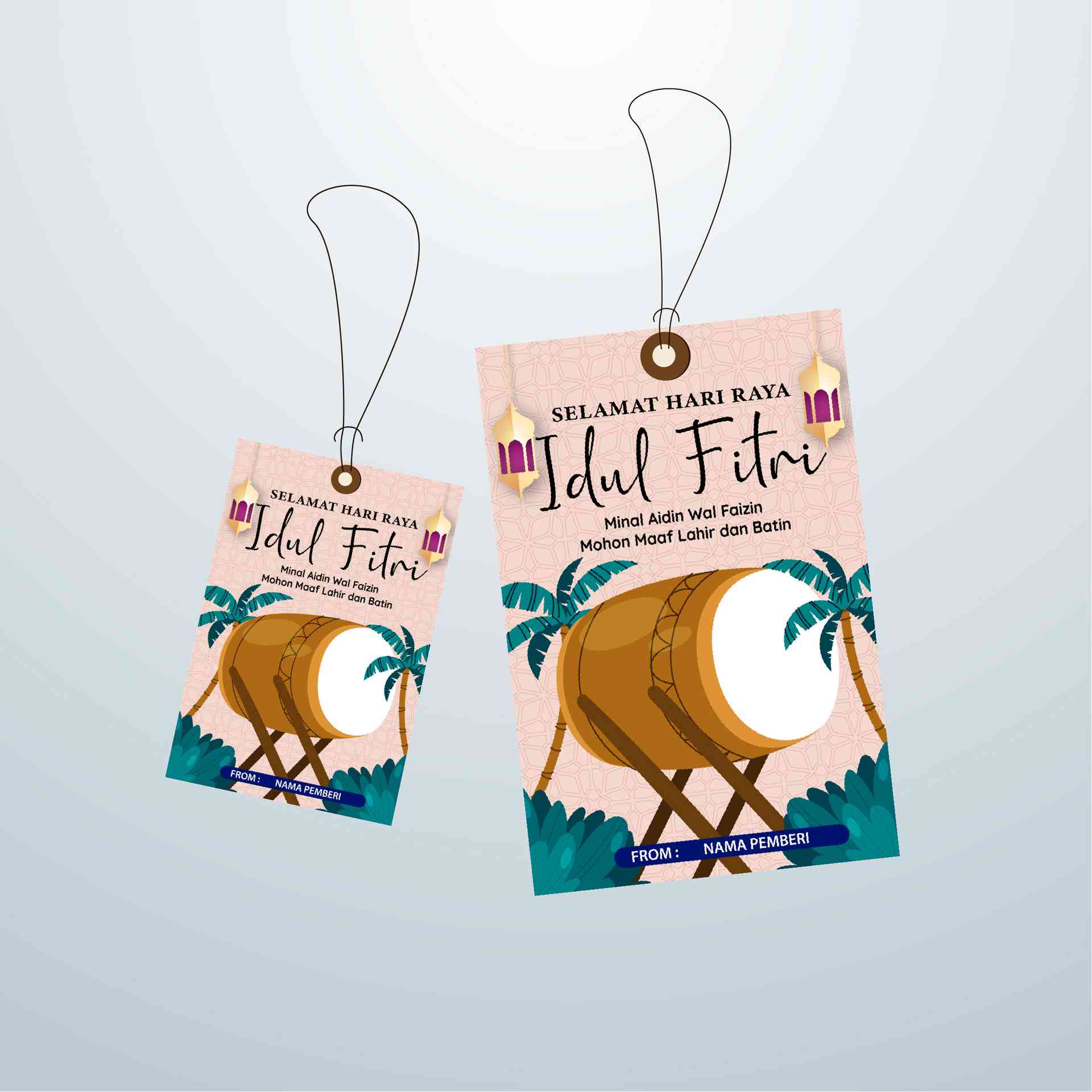 Hang tag ini memiliki desain eksklusif untuk perayaan Eid Al Fitr Mubarak, dengan tampilan yang elegan dan bernuansa Islami. Latar belakangnya menampi...