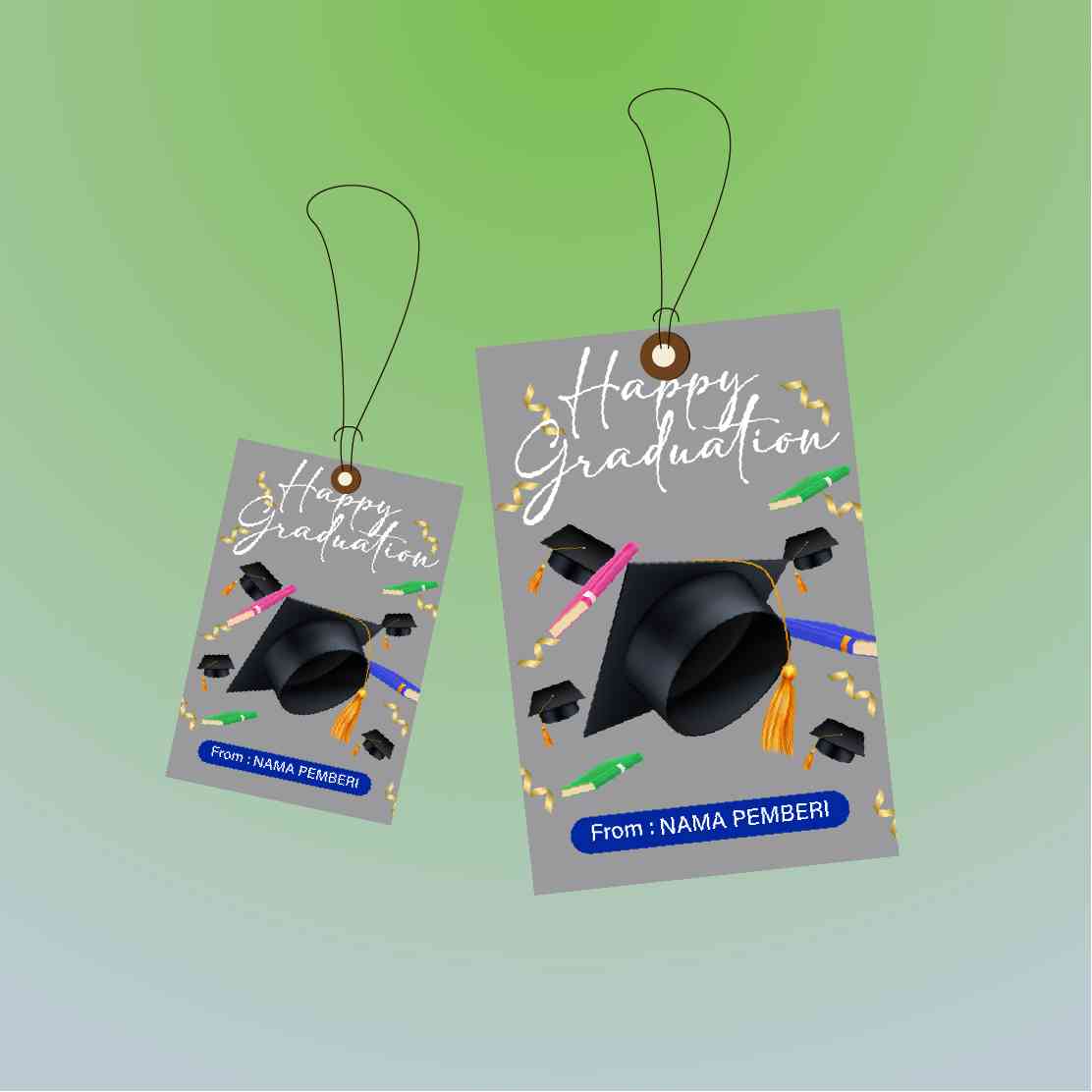 Desain hangtag dengan latar gradasi ungu biru yang menawan ini dihiasi daun-daun kecil di sudut atas dan bawah. Memberikan kesan ceria namun tetap rap...