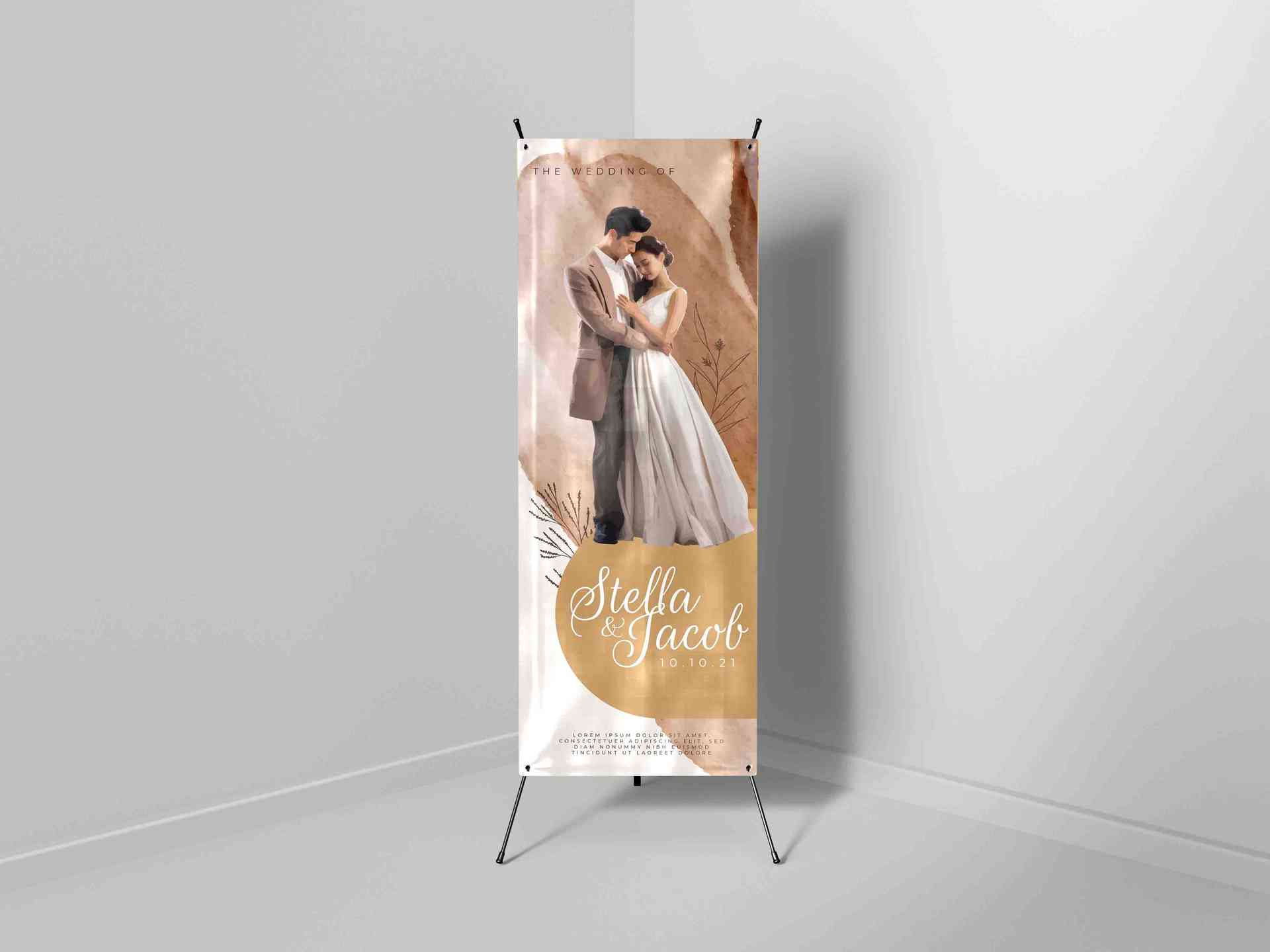 Desain x-banner ini menghadirkan kesan hangat dan natural dengan nuansa rustic minimalis yang didominasi warna cokelat tanah dan beige. Di bagian teng...