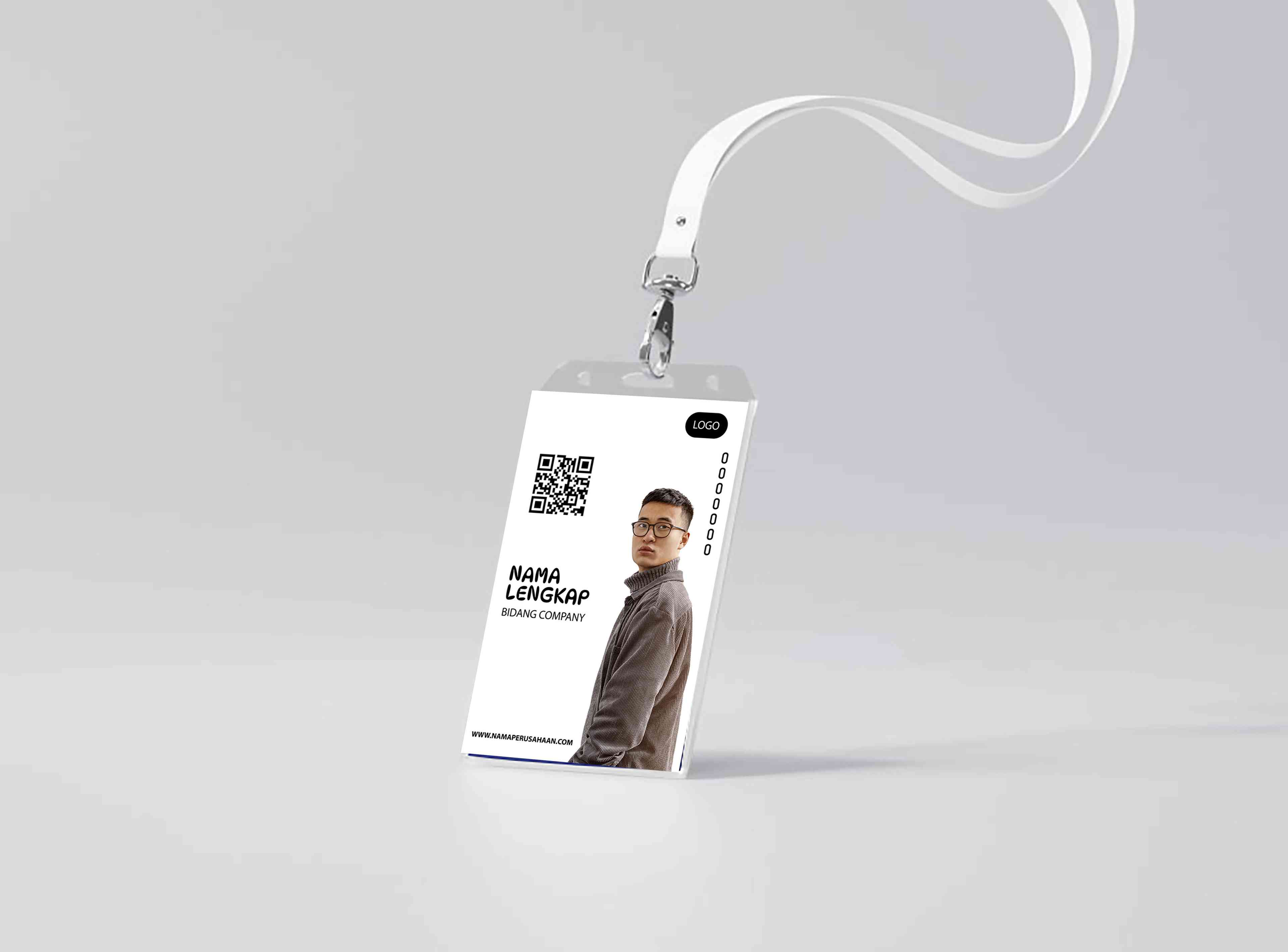 🖼️ Desain Visual:Tampilan Umum:Dua ID card dalam holder plastik bening, dipasang dengan tali lanyard hitam.Gaya ini sangat cocok untuk perusahaan ram...