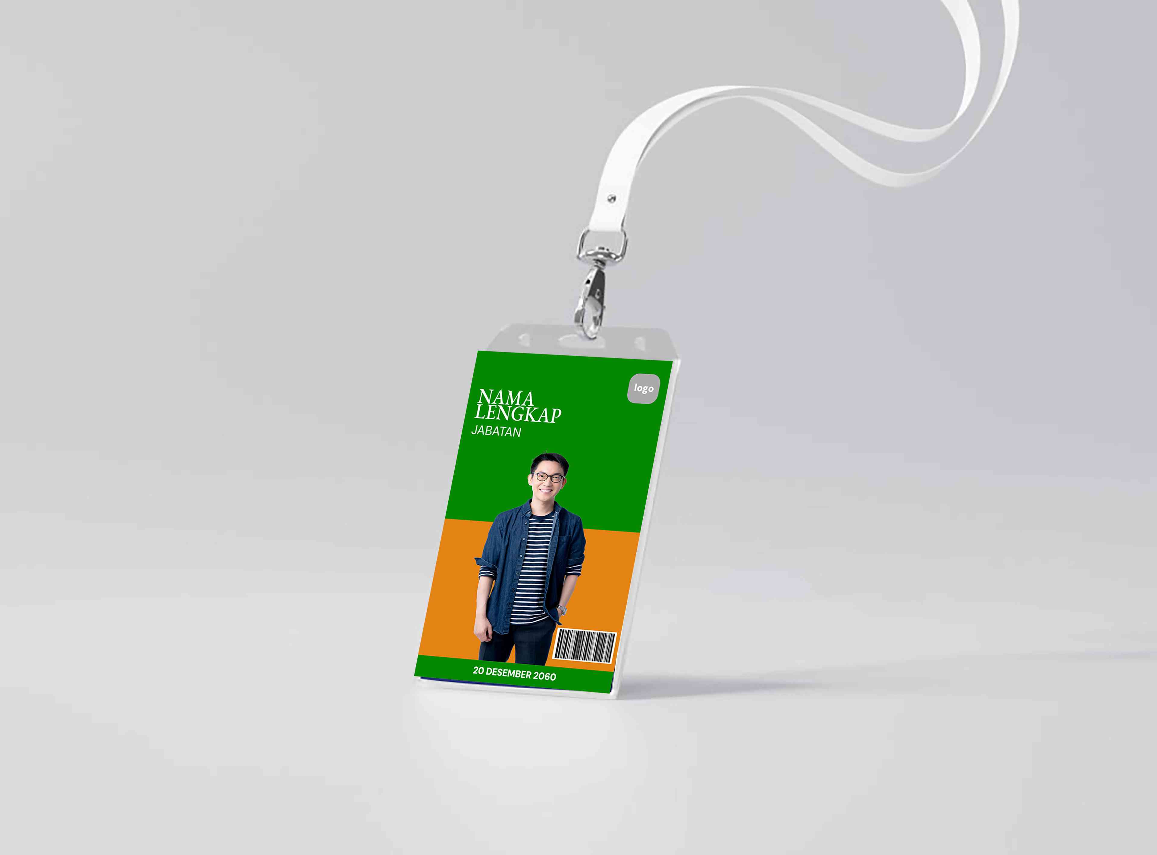 Desain ID card ini mengkombinasikan warna hijau dan orange cerah dengan tata letak minimalis yang menampilkan nama lengkap dan jabatan di bagian atas,...