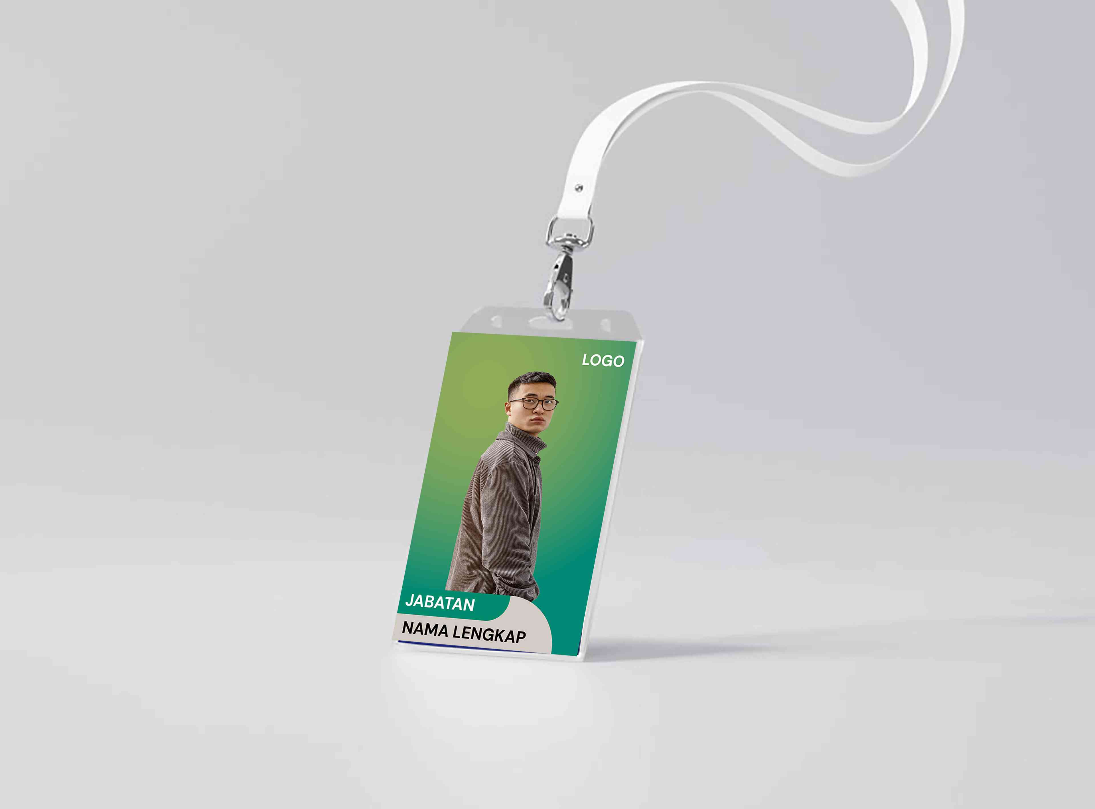 Desain ID card ini tampil segar dengan gradasi hijau tosca yang memancarkan energi positif dan profesionalitas. Nama dan jabatan tertera jelas di bawa...
