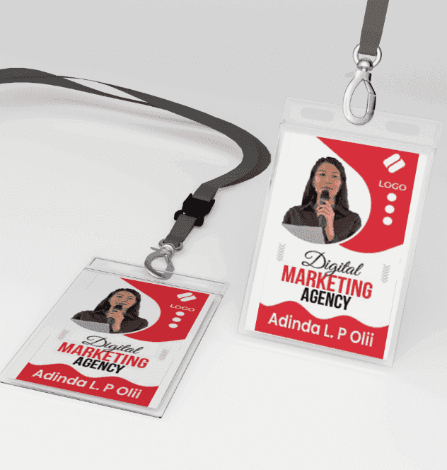 ID card vertikal ini memiliki desain simpel dan stylish dengan warna dominan merah maroon yang memberikan kesan profesional. Bentuknya persegi panjang vertikal menampilkan elemen visual berupa bidang maroon di sisi kiri dan bagian tengah dengan foto pemilik, serta ruang khusus untuk nama dan jabatan. Karakter utama dalam desain berupa teks identitas dan logo perusahaan yang tampil jelas di bagian atas. Cocok digunakan sebagai kartu identitas karyawan di lingkungan perkantoran atau instansi bisnis modern, membidik target pasar korporasi dan organisasi yang mengutamakan kesan formal serta tata kelola yang rapi.