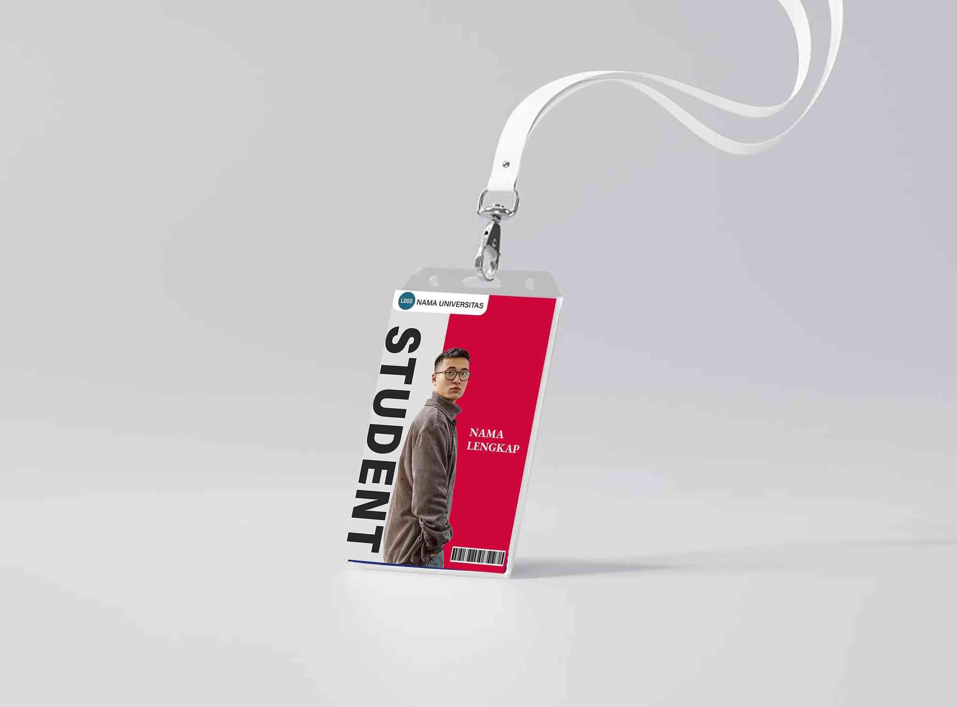 Desain ID card ini menampilkan konsep formal dengan warna biru elegan, dilengkapi foto full body setengah badan pada sisi kanan yang memberikan kesan...