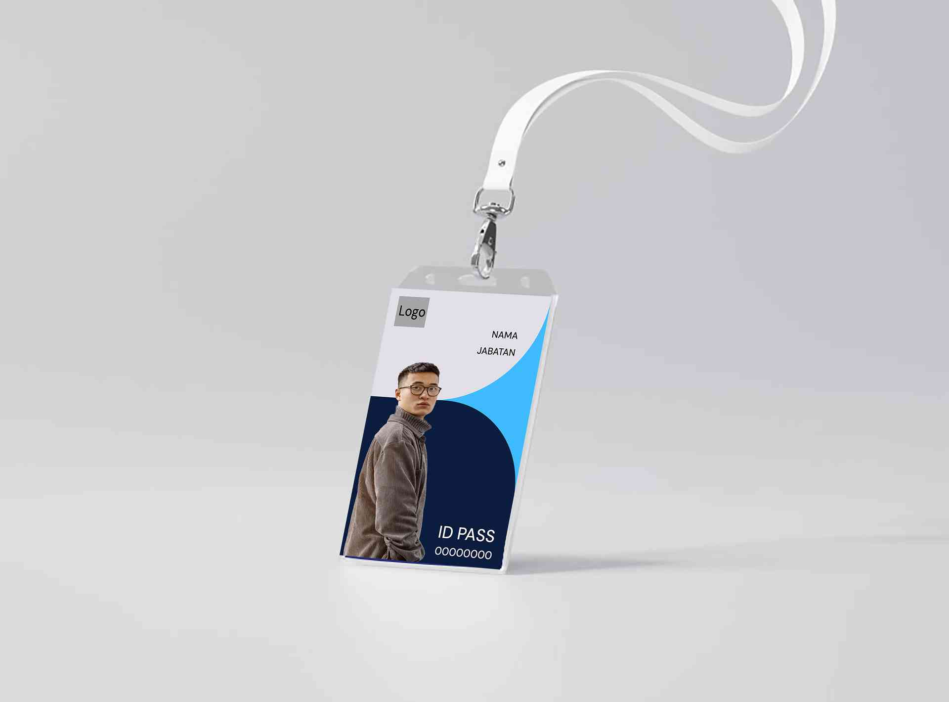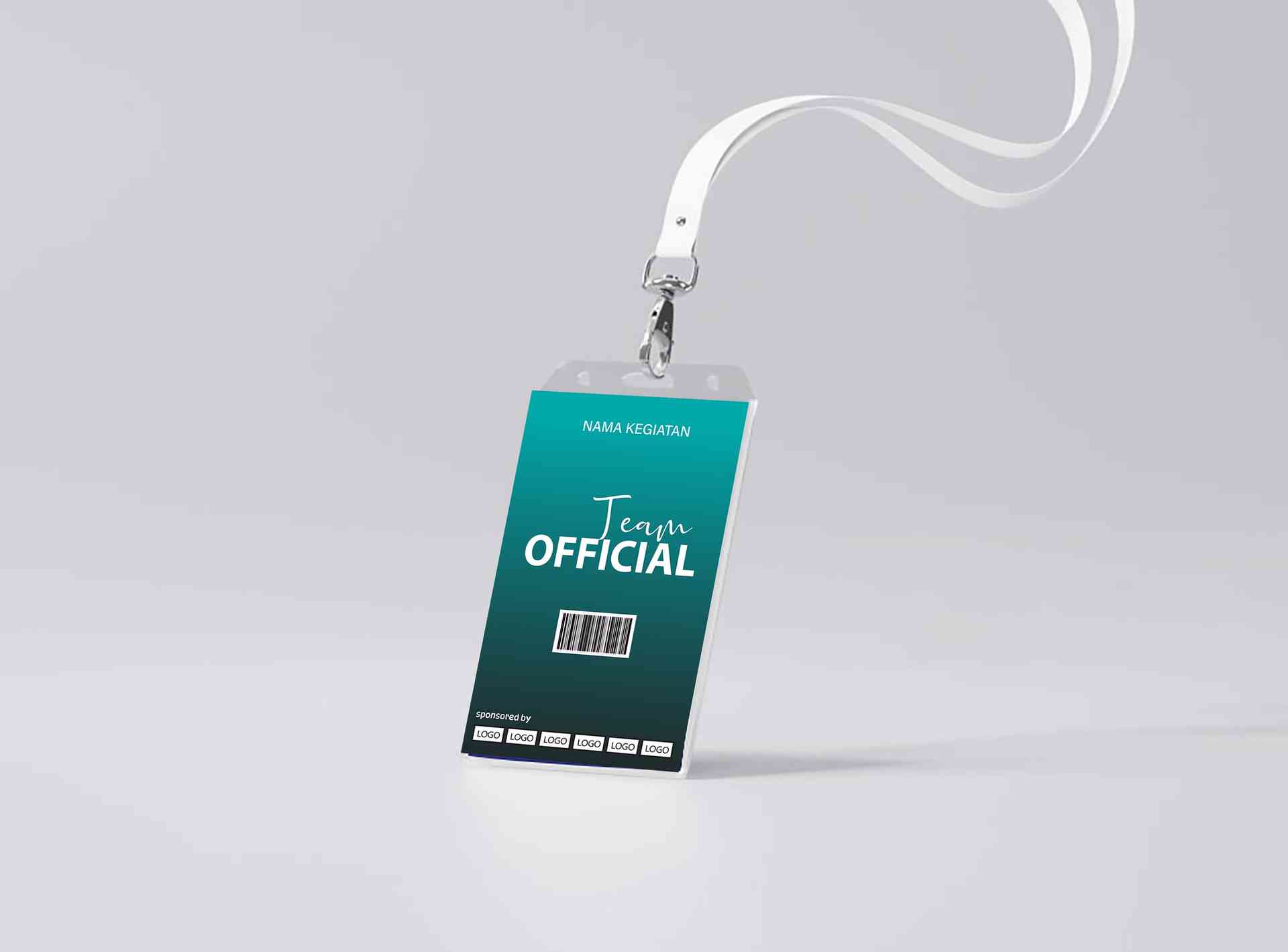 ID Card untuk keperluan team official acara ini berbentuk persegi panjang vertikal dengan sudut membulat, menampilkan desain profesional dan identitas...