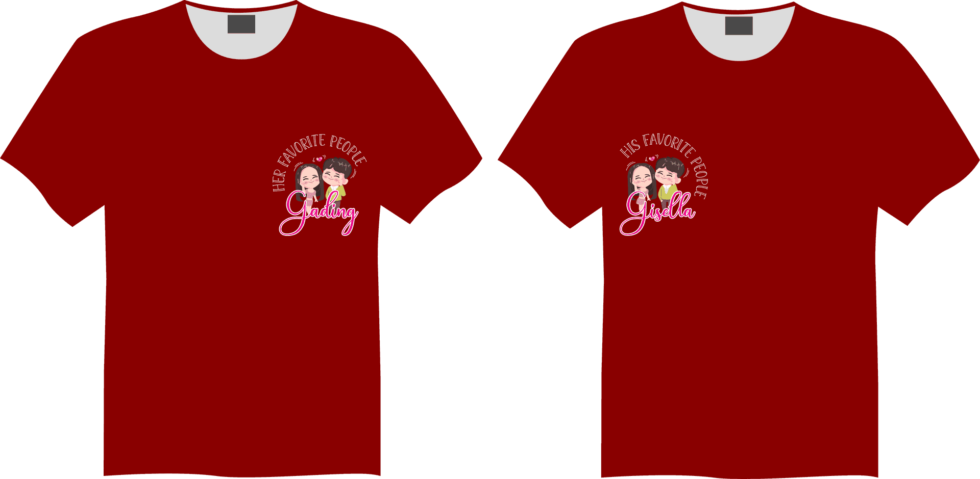 Desain kaos couple ini mengusung tema romantis yang penuh makna, dengan sentuhan lucu dan personal yang sempurna untuk pasangan.Pada kaos pria, di bag...