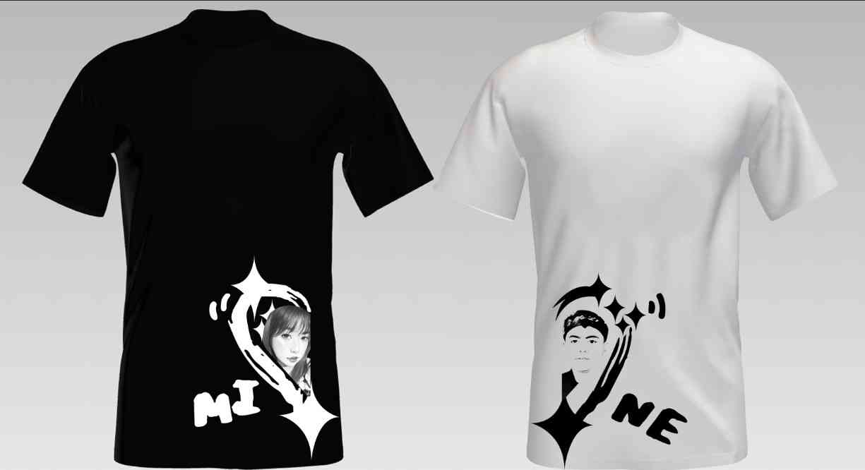 Desain kaos ini menampilkan konsep pasangan yang saling melengkapi dengan warna hitam dan putih serta desain wajah masing-masing yang membentuk kata "...