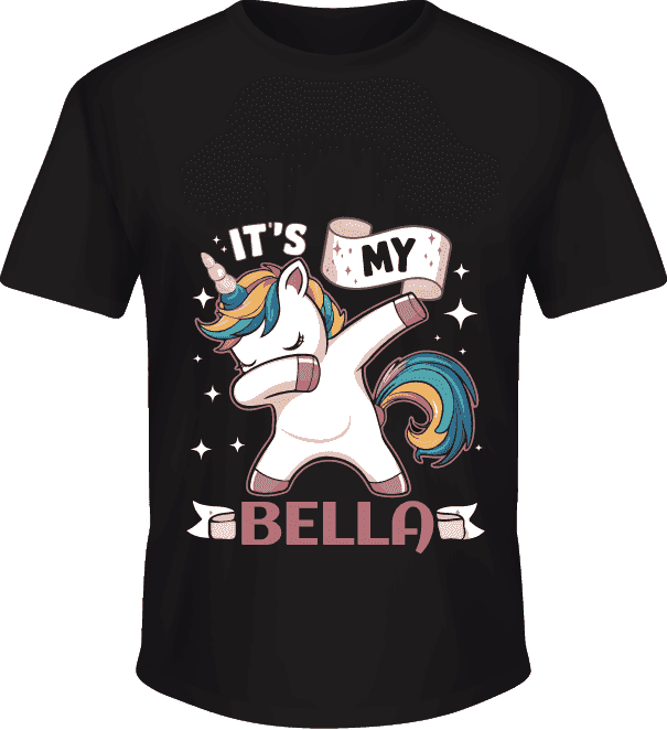 Kaos ulang tahun ini dirancang dengan nuansa ceria namun elegan, menampilkan latar belakang hitam yang kontras dengan ilustrasi unicorn berwarna paste...
