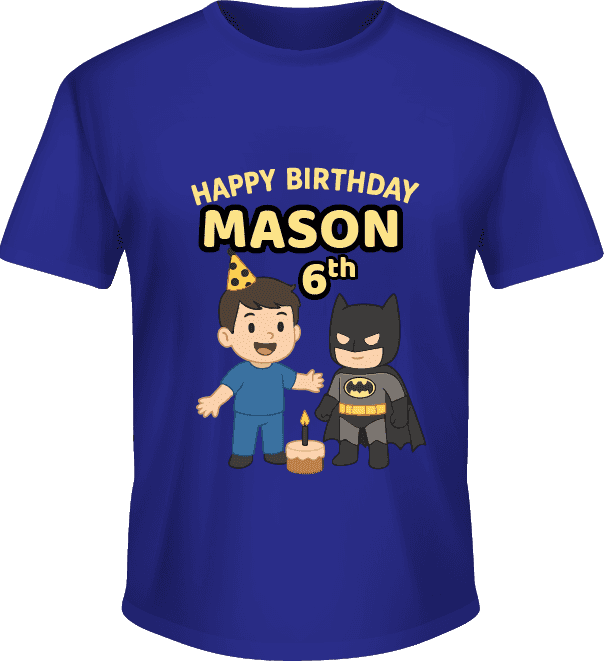 Kaos ulang tahun ini didesain khusus untuk anak laki-laki dengan nuansa warna biru gelap yang maskulin dan elegan. Di bagian tengah kaos terdapat ilus...